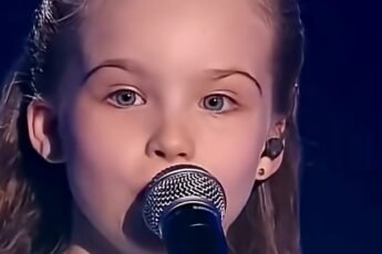 She barely reached the microphone.Her white dress fluttered under the lights.The room was silent — not