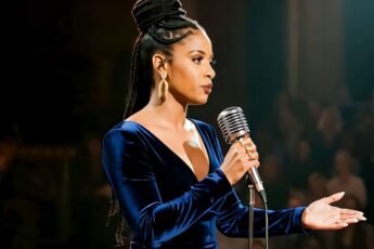 Dressed in a stunning midnight-blue velvet gown, she stood like a statue of soul and grace.