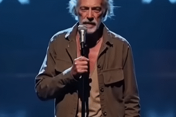 The stage lights glimmered softly as a 54-year-old man stepped into the spotlight, holding a simple microphone