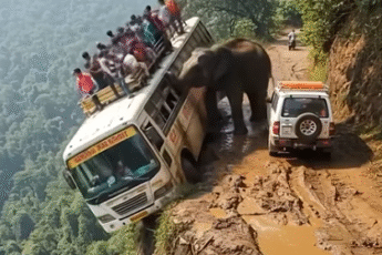 The bus groaned like a wounded animal as its front wheels slipped dangerously close to the abyss.