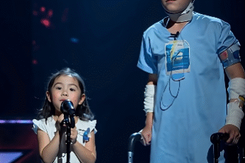 The stage lights rose to reveal two small figures—one dressed in a simple white dress, the other in a