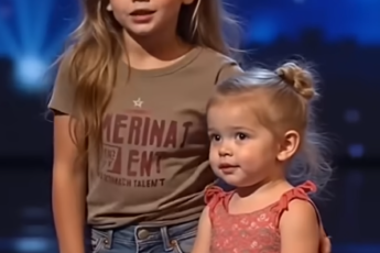 The crowd fell silent the moment they stepped onto the stage — two tiny sisters, hand in hand.