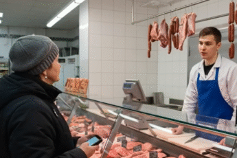 Every morning, at the same hour, the old woman appeared at the small butcher shop on the corner.