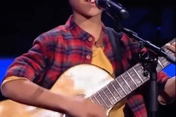 He stepped into the spotlight wearing a simple plaid shirt and round glasses, gripping a guitar nearly