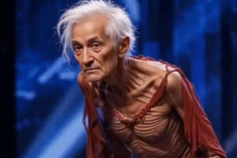 An elderly woman, her silver curls glowing under the spotlight, moved slowly yet gracefully, draped in a soft, flowing gown. Her hands were delicate, trembling slightly with age, but her gaze was unbroken — sharp, knowing, ancient. And yet, what struck everyone first… was her impossibly swollen belly.