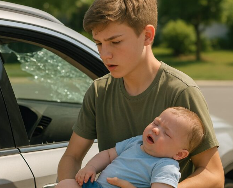 Without hesitation, he tried to open the door. Unable to, he grabbed a nearby stone, broke the window, and pulled the baby out. His hands were shaking, but he held the newborn carefully in his arms.