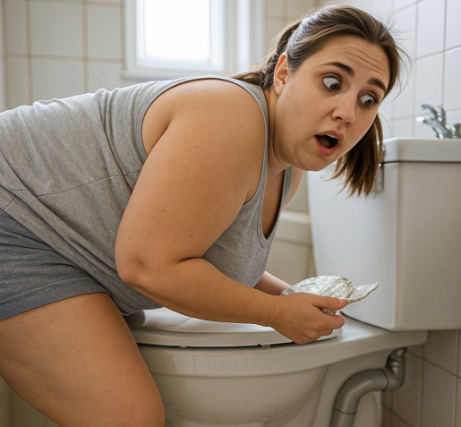 “Go to the bathroom quickly. I found something there… I think it belongs to your husband.”