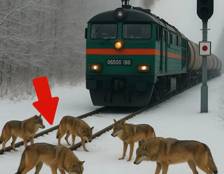 Instinctively, he pressed the brakes. The wheels screeched, and the train, pushed by inertia, rolled forward a few more meters — one of the wolves almost ended up under the wheels. But even then, the animals didn’t move. They remained standing on the tracks, forbidding the steel machine from advancing.