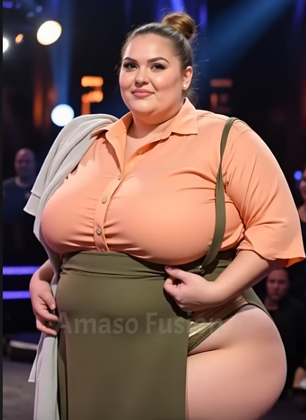 A woman dressed in a simple peach blouse and olive-green skirt walked confidently into the spotlight. Her presence was undeniable — calm yet commanding, gentle yet unshakable. Her hair was pulled into a neat bun, and her warm smile carried both humility and strength.