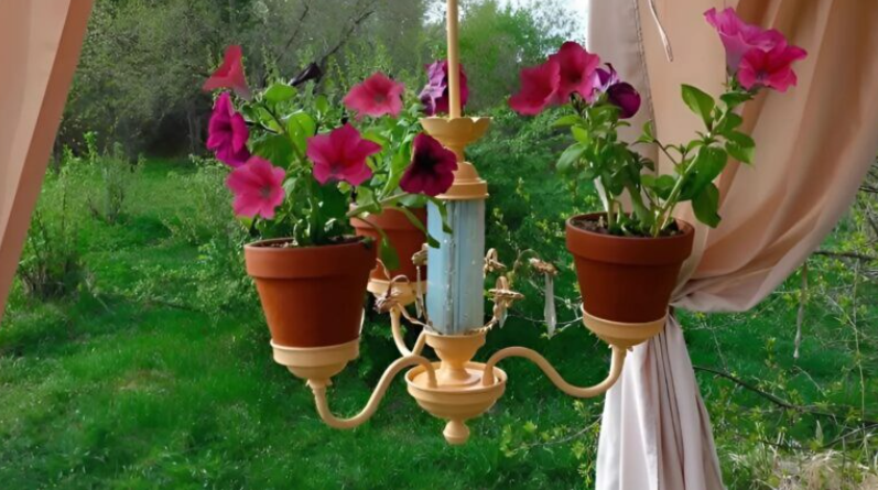 It’s beautiful, isn’t it? The once-forgotten, rusty chandeliers that people used to throw away had found new life in her hands, becoming the highlight of her garden.