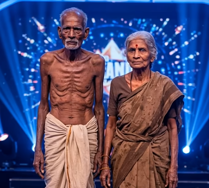 When the lights rose on the stage, two figures stepped forward — frail, humble, and graceful. They were an elderly couple, their clothes simple, their hands clasped tightly together. The world behind them glittered with neon and glamour, but they carried with them something far greater — the quiet glow of a life lived with love and purpose.