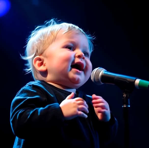 As the baby continues, the lyrics resonate louder, not just in sound but in meaning. “It goes like this, the fourth, the fifth…” — sung with the earnestness only a child can offer. The audience, perhaps for the first time, hears this classic in a completely new light.