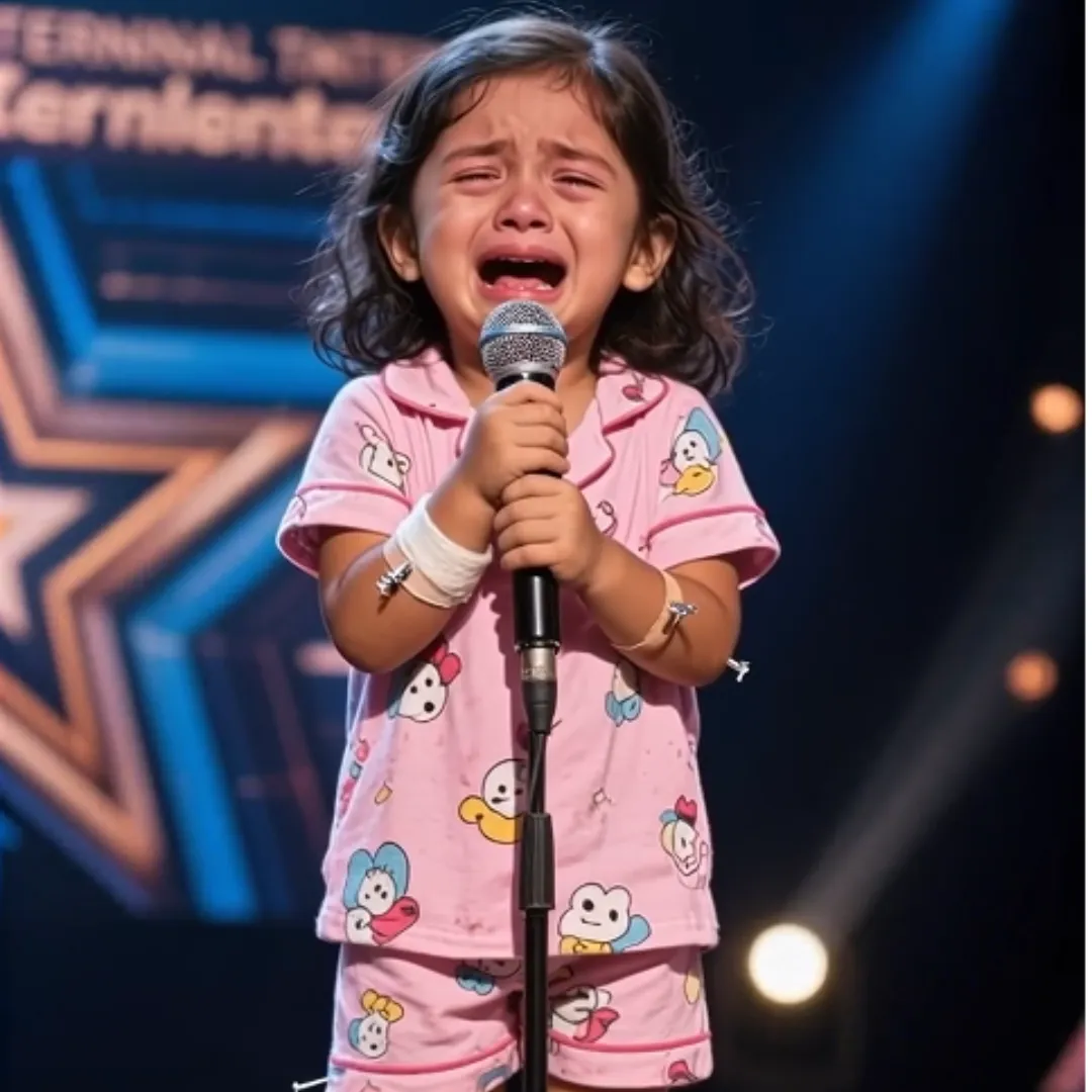 There are moments on a stage when words become powerless, when a single cry can break through even the loudest applause. Such a moment unfolded when a fragile six-year-old girl, wrapped in bandages, stepped onto the stage in her cartoon-print pajamas.