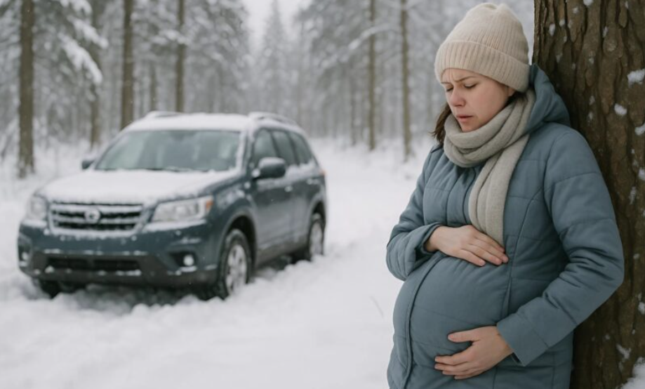 Mary understood: if she stayed in the car — she would freeze. Her phone had no signal. In despair she got out, hoping that a passing driver or rescuers would be nearby. But the forest road was empty. The woman could barely stand, her belly hurt a lot, and the baby was restless.