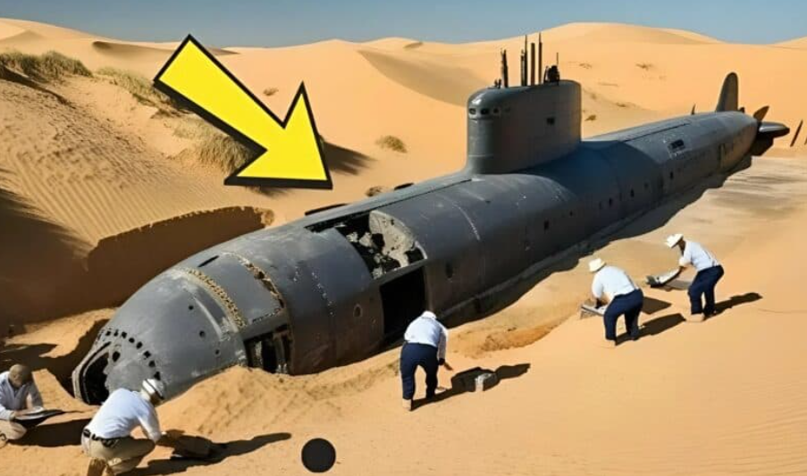 As they approached the place, no one could believe what was happening. A dark metallic silhouette was sticking out of the sand — the peeling surface, partly rusted, yet still imposing. A massive submarine, as if lost in another reality, lay under the scorching sun — far from any ocean.