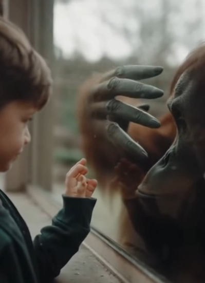But then Leo placed his other hand on the glass… and the orangutan repeated that movement too. Not once, not twice — every single gesture, perfectly mirrored. Her eyes never left the boy. She wasn’t curious. She wasn’t playful.