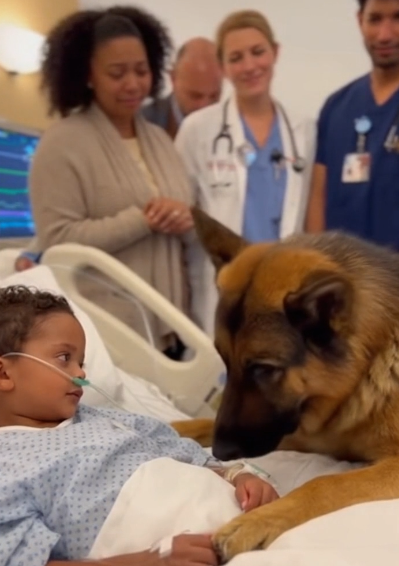 That morning, Rex pushed through the half-open hospital door before anyone could stop him. Nurses gasped, but the boy’s father raised his hand: