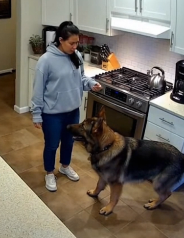 The footage showed Emily entering the kitchen as Bruno lay quietly near the fridge. But within seconds, the dog sprang to his feet—no barking at first, just intense, laser-focused attention. His nose lifted, sniffing desperately. His ears flattened. His body stiffened.