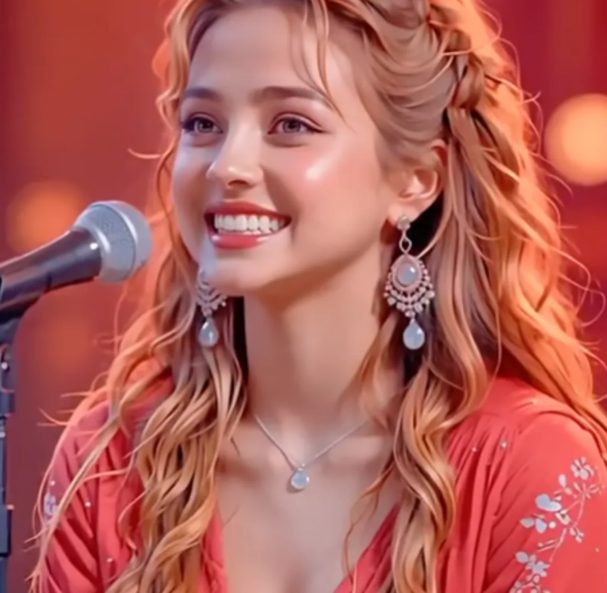 As she sang, there was something undeniably magnetic about her presence. Her body language was natural, her eyes locked with the audience as if inviting them to share in her emotions. She moved effortlessly around the stage, as if the performance was second nature to her, and yet there was a genuine vulnerability in her voice that made it impossible not to feel connected to her. Her smile, despite the nerves she must have been feeling, shone with the pure joy she felt in sharing this moment with everyone in the room.