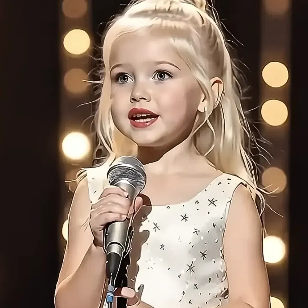 As she reached the final chorus, her voice cracked just slightly. It wasn’t a mistake — it was pure emotion. She looked up again, her small face illuminated by the stage lights, and whispered the last line of the song with a trembling smile. The sound hung in the air for several seconds after the music stopped, as if the room itself didn’t want to let it go.
