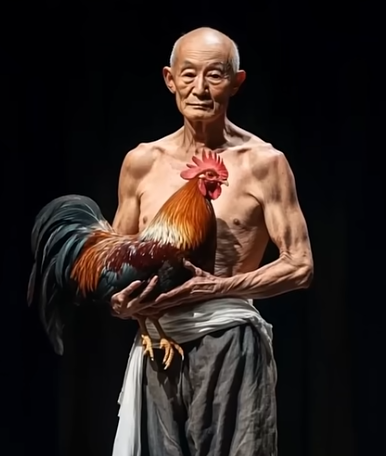 He placed the rooster gently on a wooden stand, his gnarled hands trembling slightly, not from weakness but reverence. Then he stepped back, closed his eyes, and began to breathe.