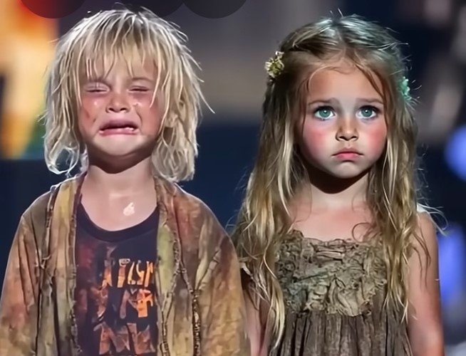Tears streaked the boy’s dirt-covered face. The girl, solemn and wide-eyed, stared into the crowd with the kind of sadness that quiets a thousand rooms.
