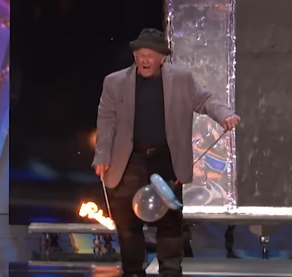 The stage lights dimmed, and a hush spread across the theater. From the shadows stepped an older man in a simple gray jacket and black hat, carrying nothing but a balloon and a set of gleaming knives. He didn’t look like the kind of person who would command a stage filled with thousands of eyes, yet there was something about his quiet confidence that held everyone’s attention.