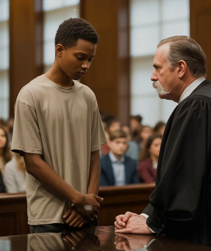 The courtroom buzzed with quiet murmurs as the young teenager stood alone before the judge. His plain T-shirt and nervous stance made him look out of place among the suited lawyers and stern officials. To most, he appeared like a boy lost in the wrong room. The judge peered over his glasses, his tone sharp and dismissive.